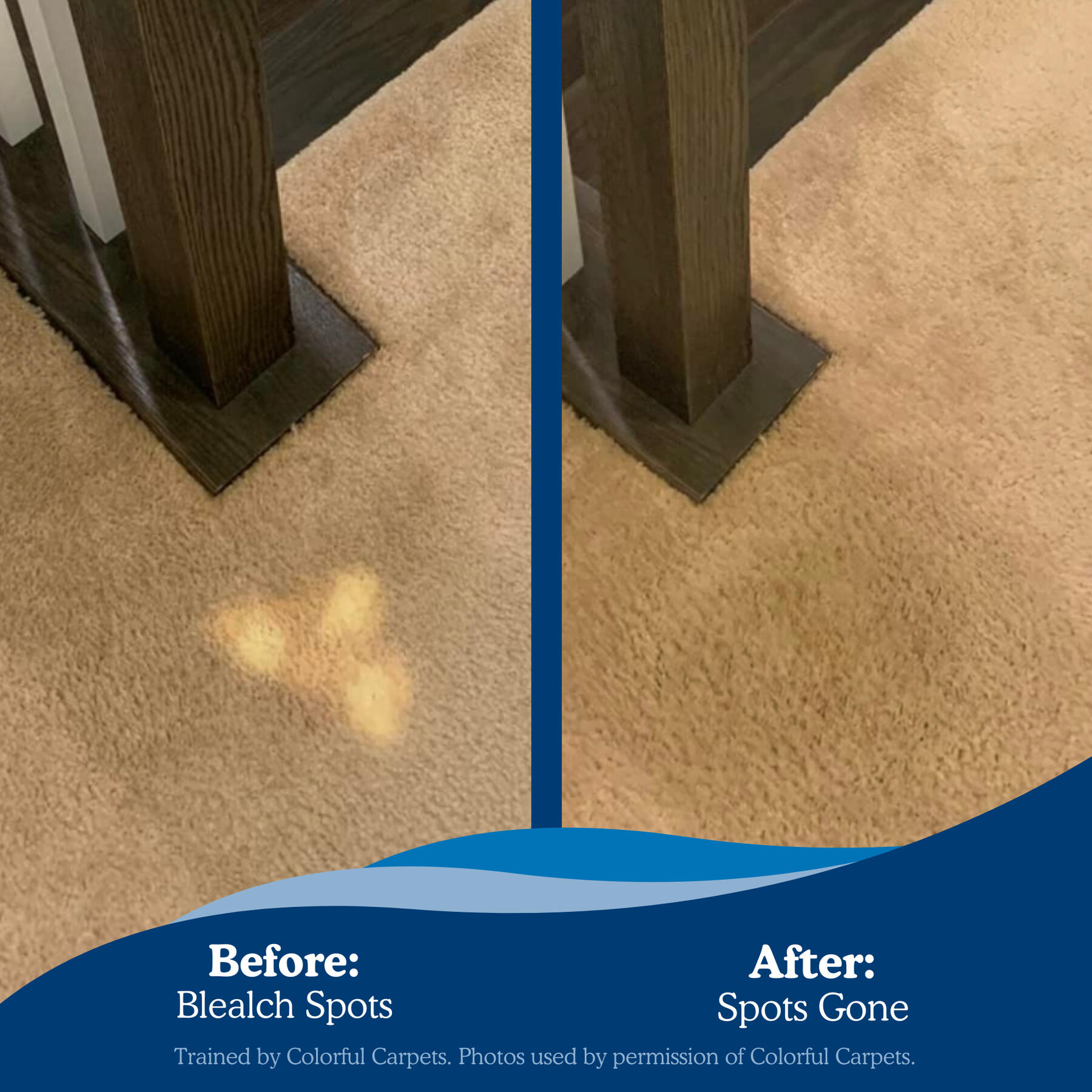 Even bleach spots on patterned carpets can often be repaired.