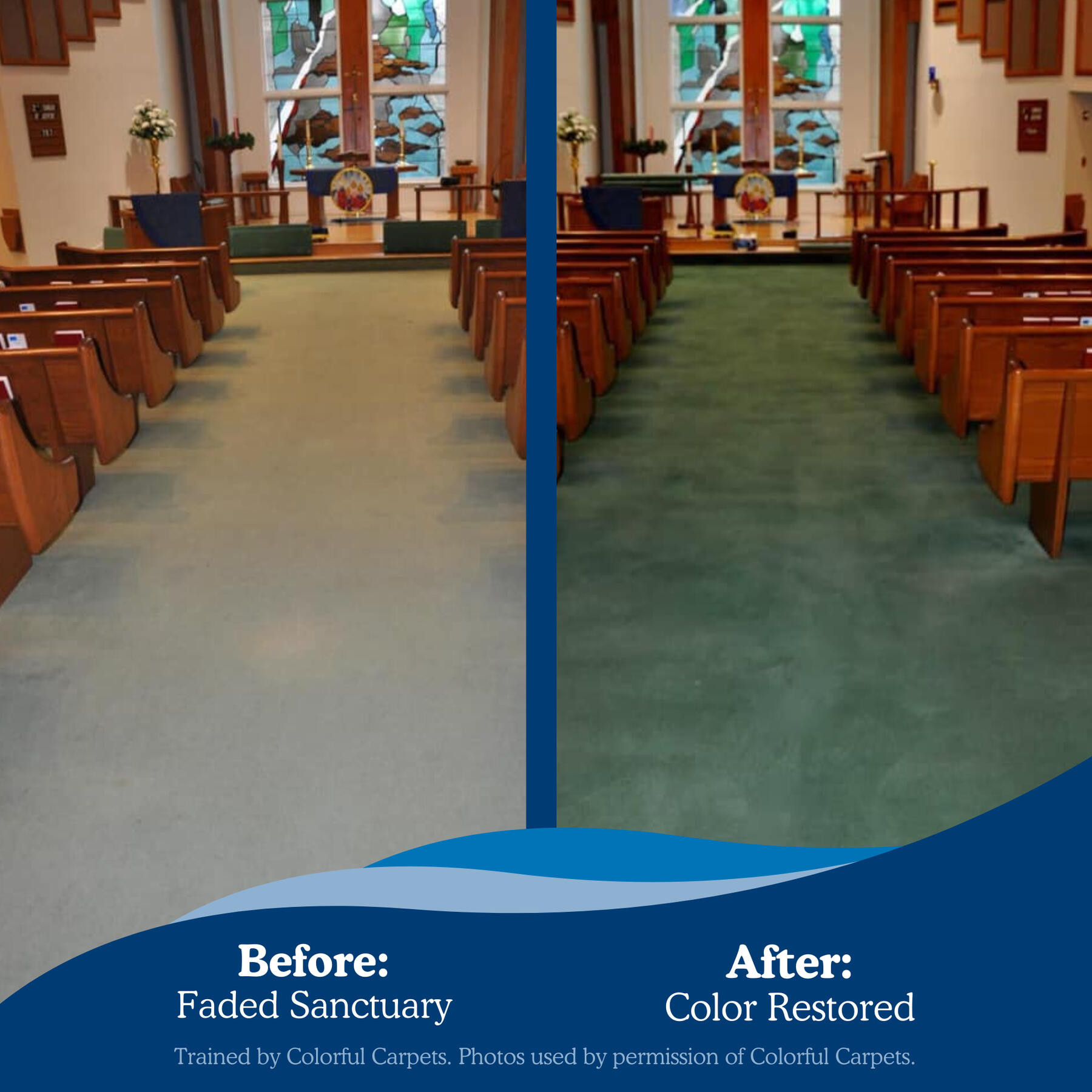 Dye entire hallways or rooms a darker color for easier upkeep, all with zero downtime for your business or church.